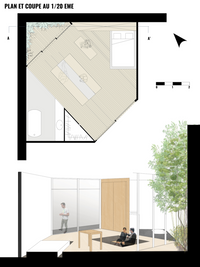 La "A House" est une colocation de 225m2 pour 5 étudiants en architecture. Le "vivre ensemble" est un aspect central de cette maison : le projet offre un espace principal au rez-de-chaussée où les étudiants pourront travailler, cuisiner, manger, recevoir, grâce à un mobilier sur-mesure pouvant accueillir les différentes fonctions de l'habiter.